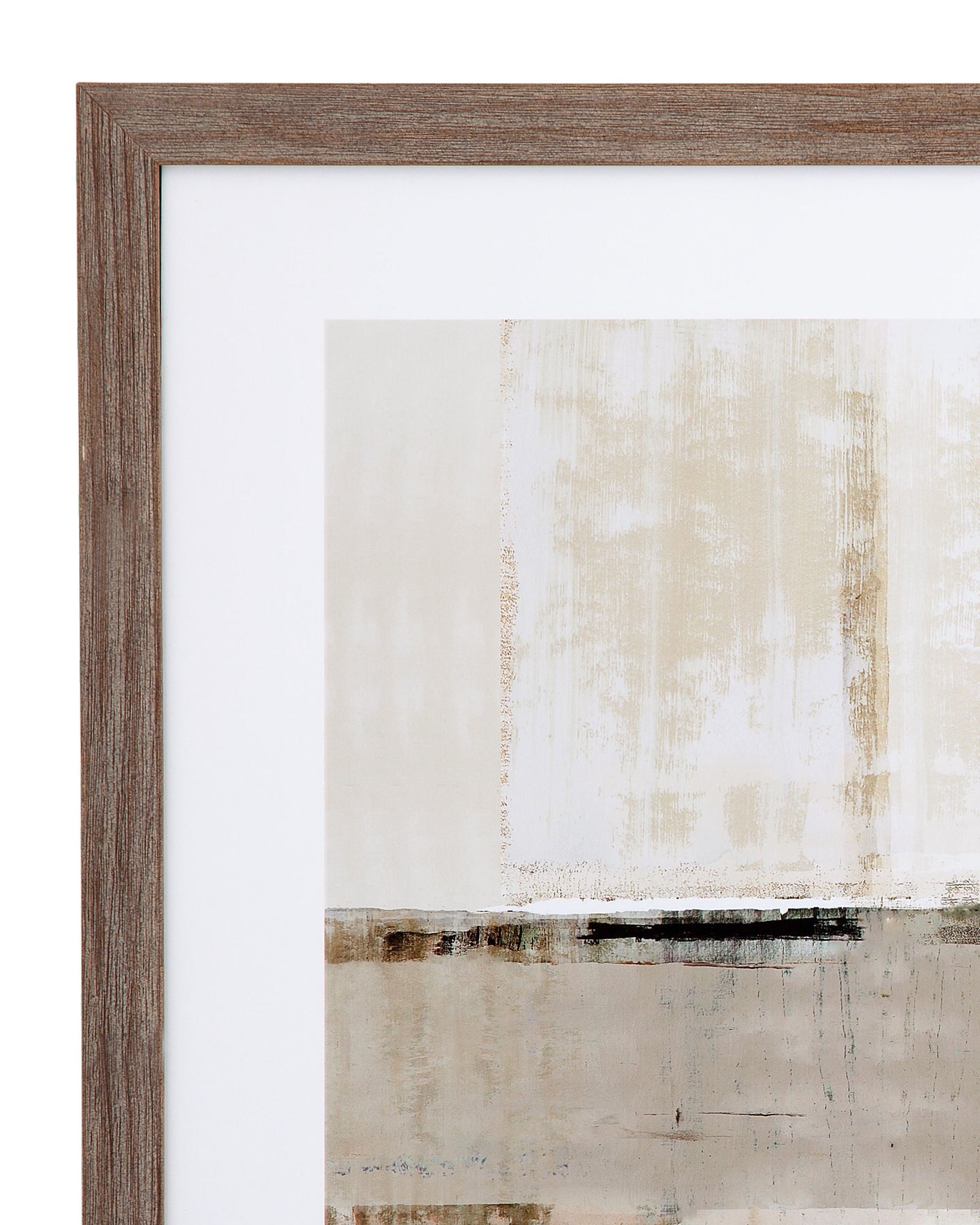 All framed under glass art is built to order in our warehouse in Bassett, VA. Please allow 4-6 weeks for shipping once your order is received. Across the Abstract Bay I features a 1-1/2" knotty pine molding. D-ring or sawtooth picture hanging hardware included. Material: Wood, Clear Glass. Made in the USA.