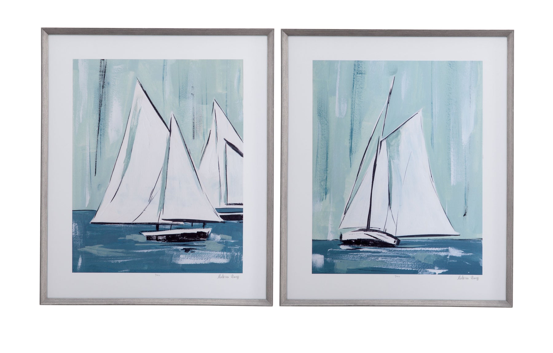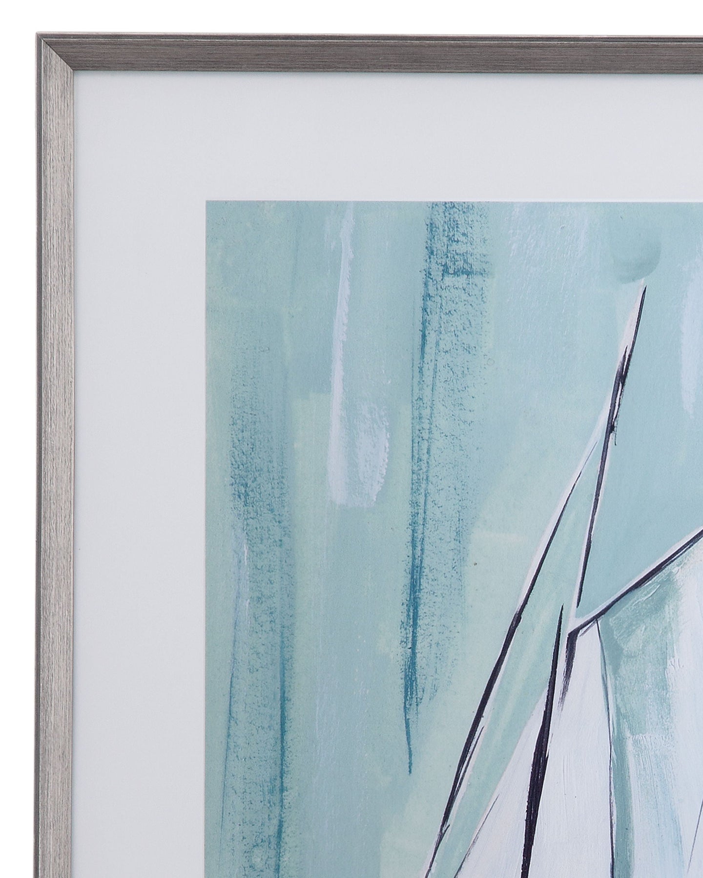 All framed under glass art is built to order in our warehouse in Bassett, VA. Please allow 4-6 weeks for shipping once your order is received. Sailing Winds II features a 3/4" brushed silver molding. D-ring or sawtooth picture hanging hardware included. Material: Wood, Clear Glass. Made in the USA.