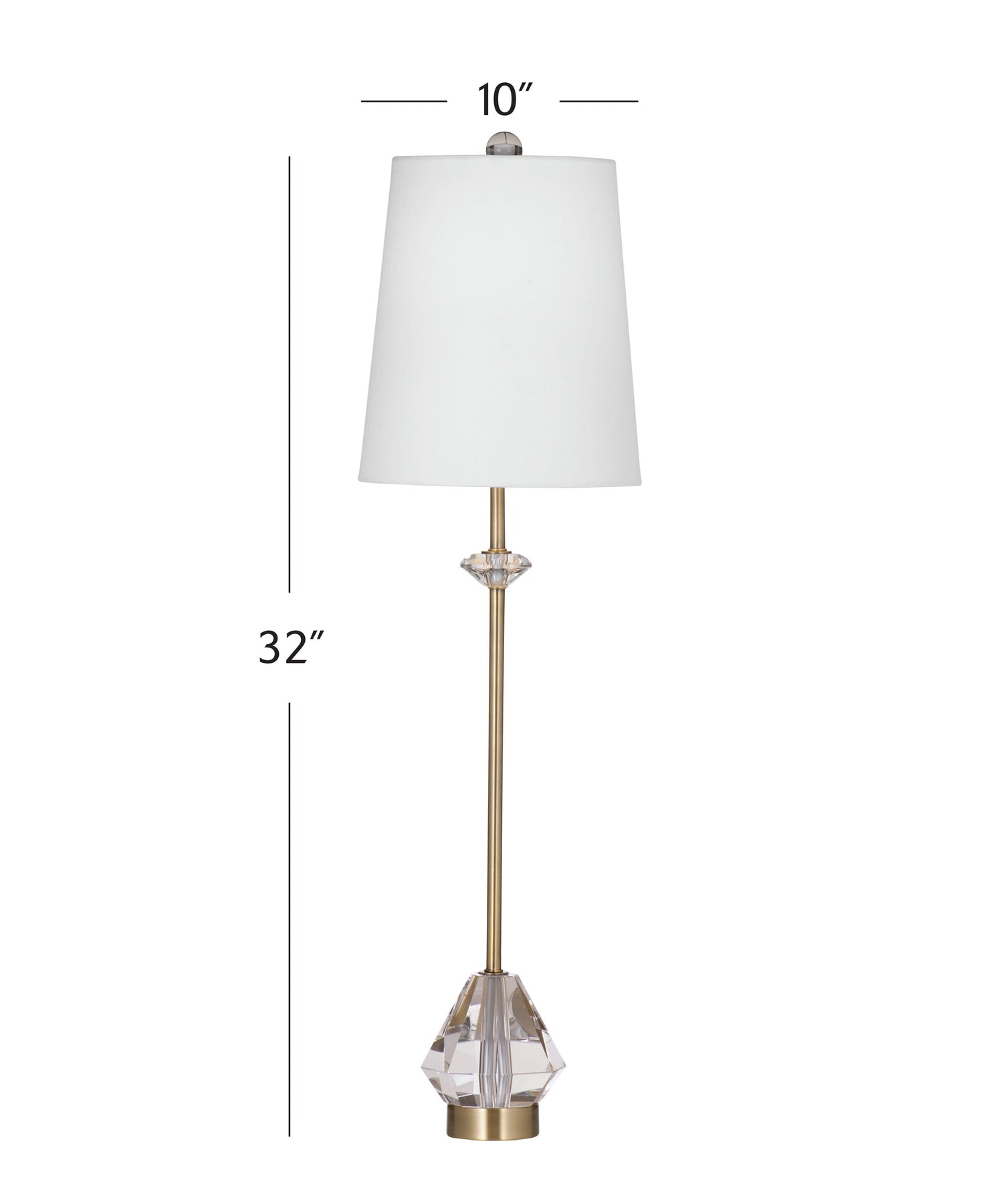 The Hampton Table Lamp embodies timeless sophistication, meticulously crafted from crystal and adorned with an antique gold finish, showcasing a marriage of elegance and refinement. The exquisite crystal base adds a touch of opulence, catching and refracting light in a captivating display. Topped with a gracefully tapered white shade, the lamp exudes a soft and ambient glow, making it a perfect addition to any interior seeking a harmonious blend of classic allure and contemporary charm. The antique gold finish further enhances its visual appeal, contributing to a luxurious and stylish presence. The Hampton Table Lamp stands as a statement piece, seamlessly combining quality craftsmanship, radiant crystal, and a tasteful color palette to elevate the ambiance of any space it graces.
