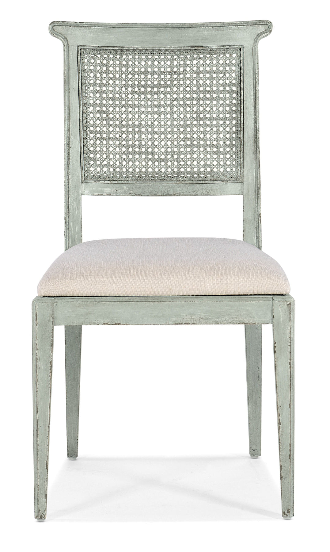 Inspired by the tropical craftsmanship of the West Indies and the woven cane accents of classic British and Dutch Colonial design, the Charleston Upholstered Seat Side Chair has an oyster-colored fabric seat and a cane back. The color is the result of the natural patina formed when copper is exposed to air and seawater. This weathered green color represents years of Low Country heat and moisture degrading the pure pigment color, creating a truly venerable aesthetic.