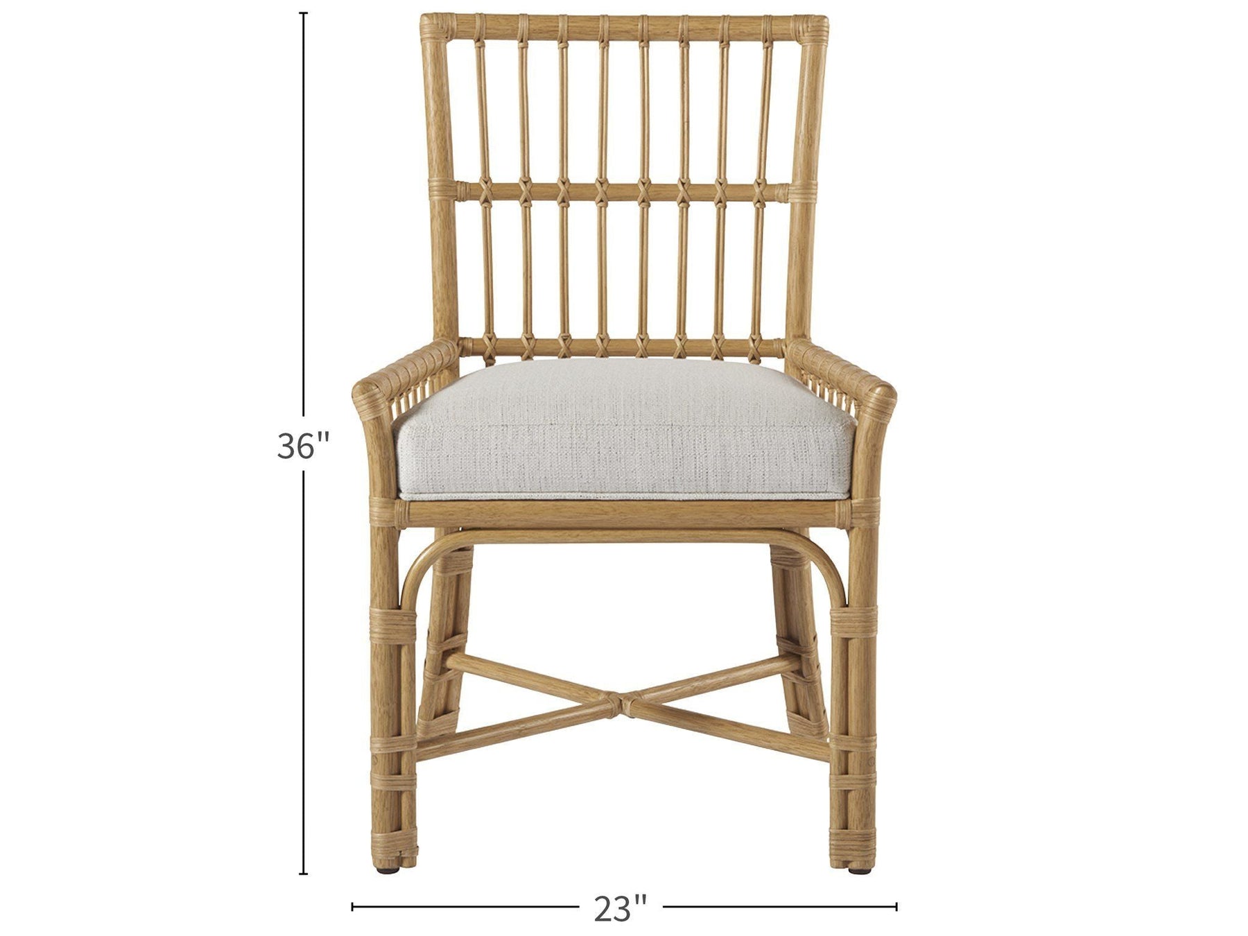 A charming rattan body cradles a generous seat cushion in the Clearwater Low-Arm Chair, a chic seating option perfect for a dining table, a breakfast nook, or simply as a home accent piece.