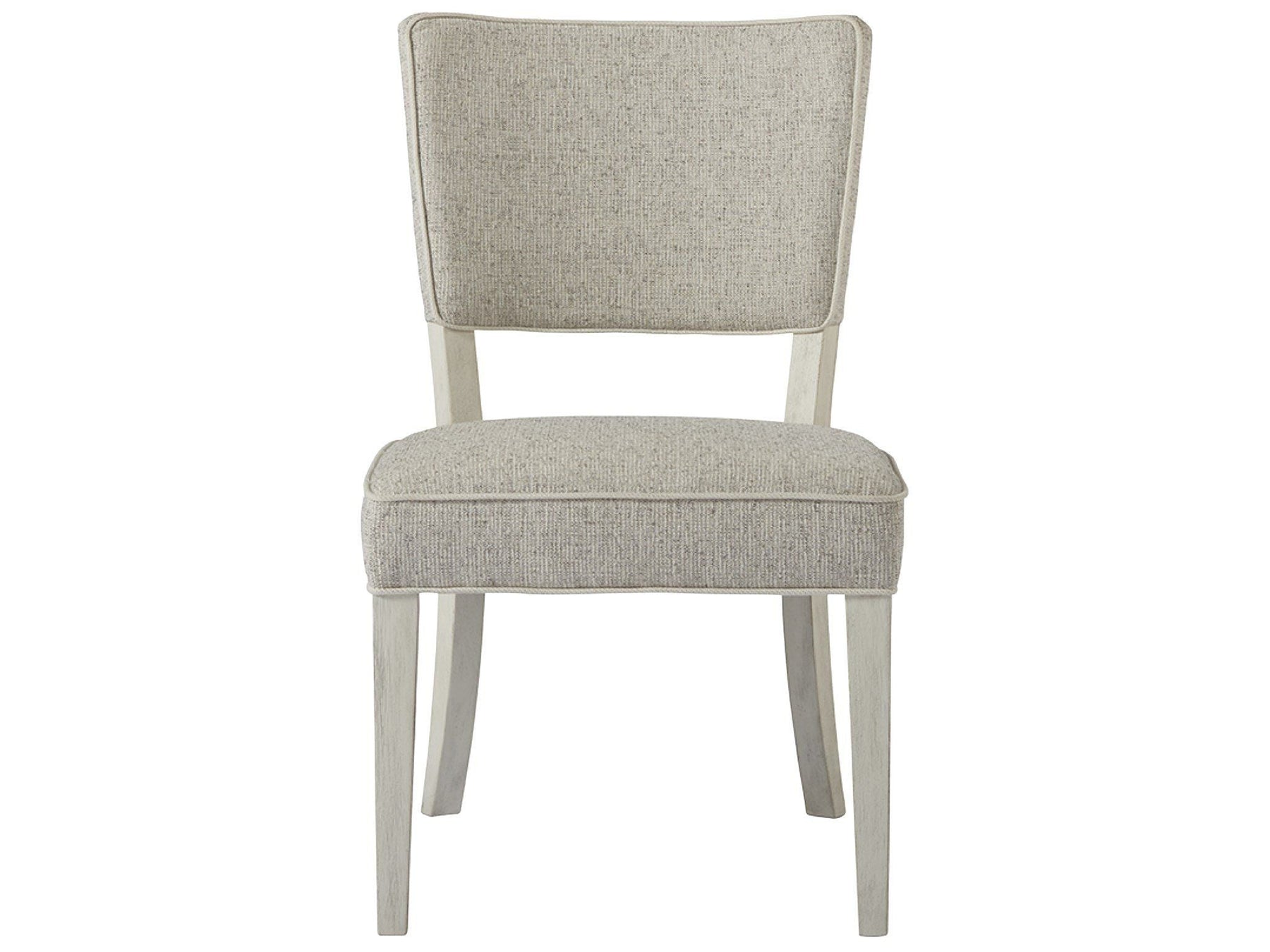 Showcasing a lushly upholstered seat and back featuring white welting and crisply tapered legs, the Destin Side Chair brings an airy refinement to living areas.