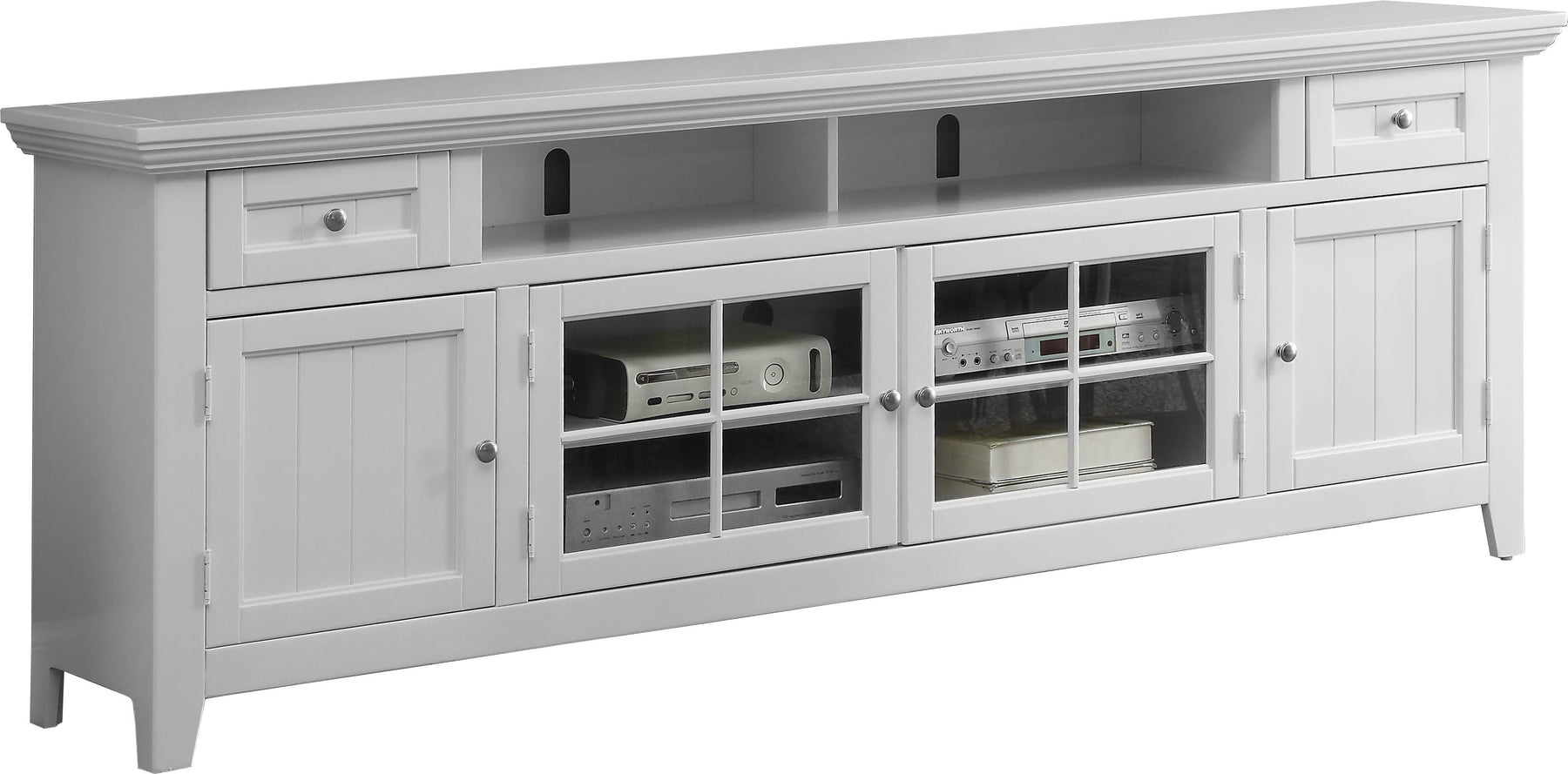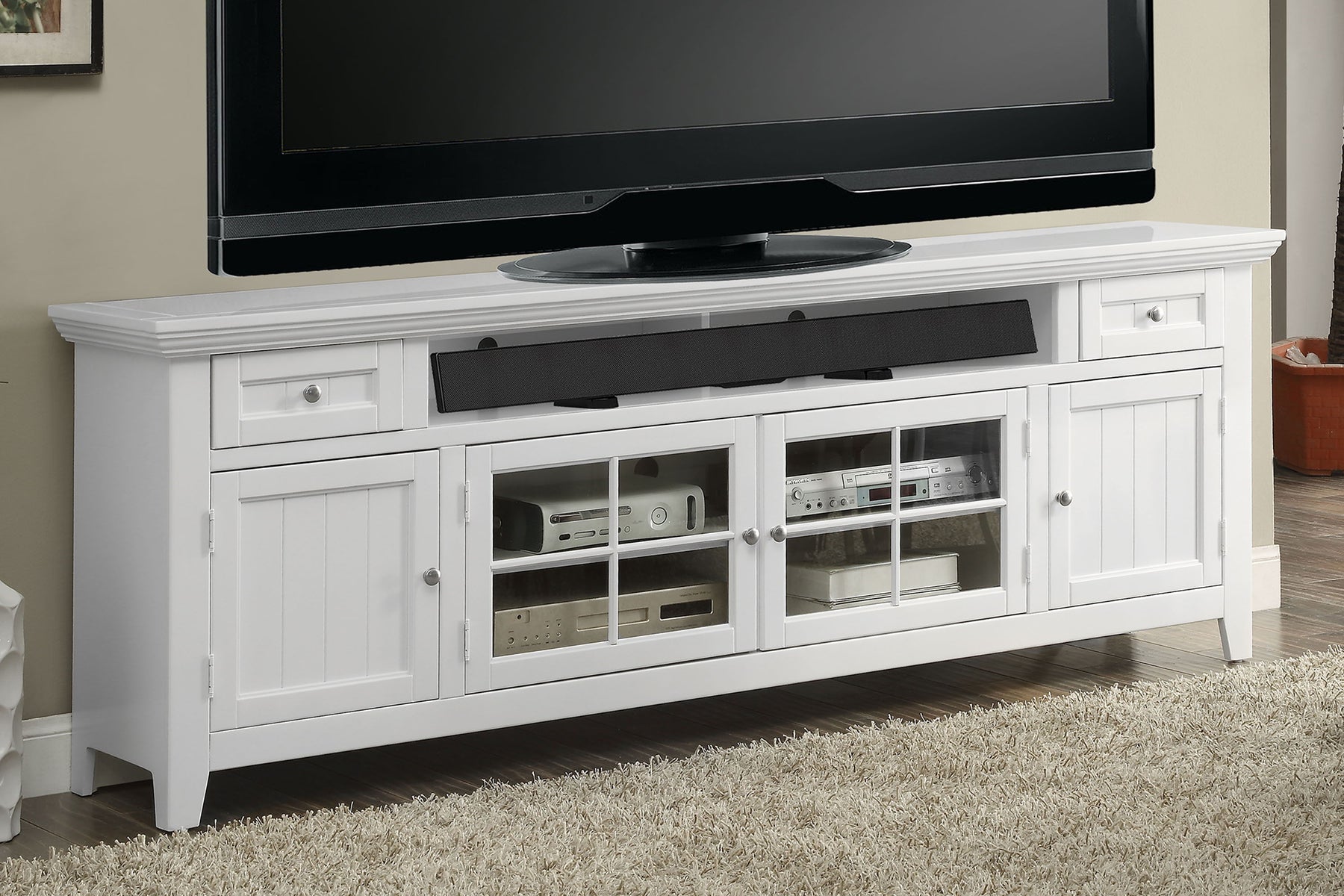 From the first moment you see it, the TV Console from the Tidewater collection is destined to become a must-have. Perfect for displaying your media and electronics, it features glass doors, adjustable wood shelves, cord management, ventilation and a sound bar opening. Its fresh Vintage finish conveys endless charm while feeling at-home in any space.