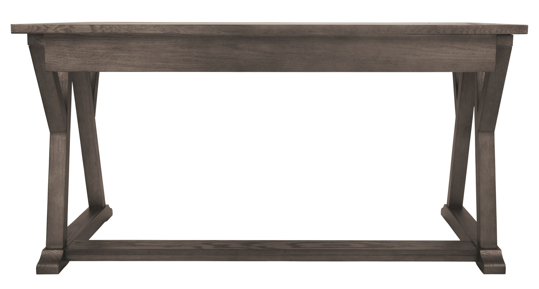 Work the latest trend in casual farmhouse living with this home office desk. Elements include distinctive cross brace with stretcher styling and a wire brushed gray-brown finish that’s so easy on the eyes. Making this home office desk all the more unique: a faux bluestone inset on the desk top for a mixed media twist. Three smooth-gliding drawers with brushed nickel-tone pulls help keep you organized and on task.
