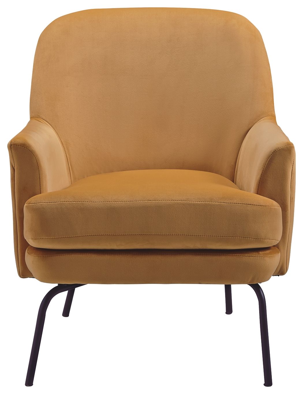 Amp up the cool factor in your room as you sit back and relax in contemporary comfort. A gold polyester velvet provides a sumptuous perch from which to soak up the very modern space you—ve created.