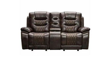 Enhance your living room with the stylish and functional Nikko console loveseat. Crafted with pocket coil seating and a hardwood plywood frame, it ensures optimal comfort and durability. The built-in storage console with cup holders provides convenient space for keeping your essentials within reach. With the manual recliners, you can easily find your preferred position and relax with ease. This loveseat is designed to complement any decor with its sleek and modern aesthetic. Upgrade your seating arrangement with the Nikko console loveseat and enjoy the perfect combination of comfort and practicality.