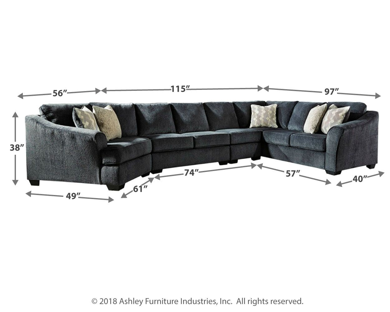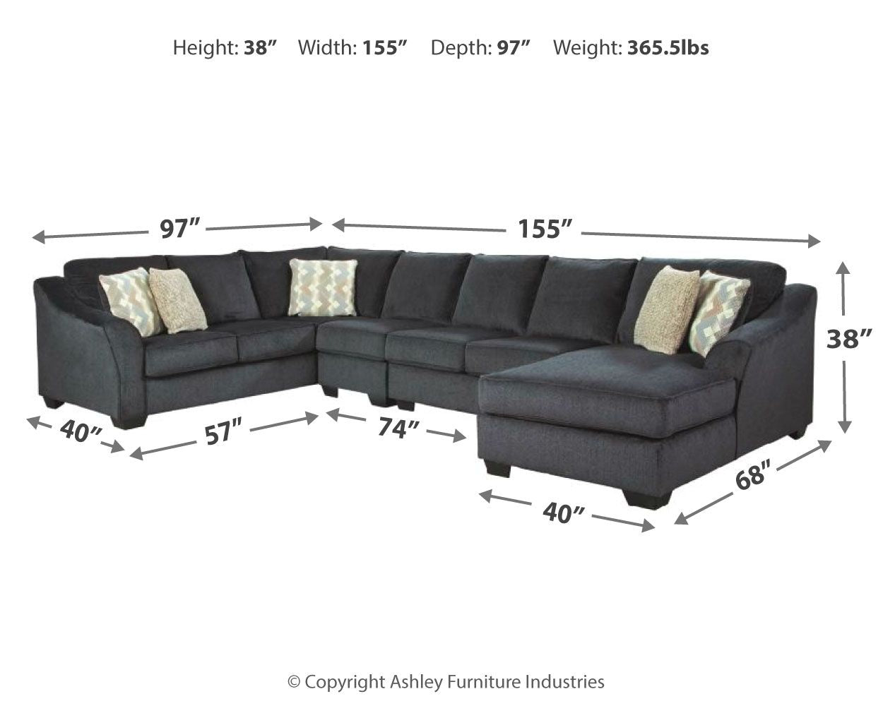 Eltmann - Slate - Right Arm Facing Corner Chaise With Sofa 4 Pc Sectional 365.5 lb