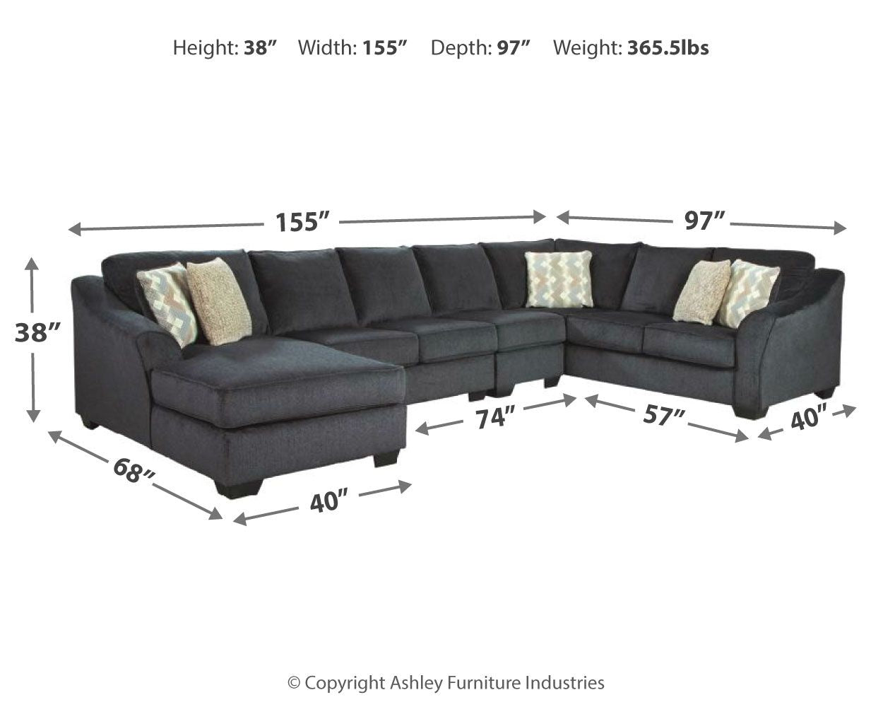 Eltmann - Slate - Left Arm Facing Corner Chaise With Sofa 4 Pc Sectional 365.5 lb