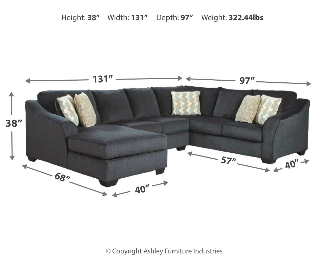 Eltmann - Slate - Left Arm Facing Corner Chaise With Sofa 3 Pc Sectional 322.44 lb