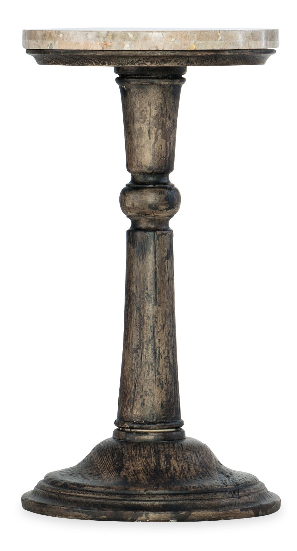 A perfect perch for refreshment at the end of a tiring day, the Rabbs Prairie Martini Table contrasts a shaped base finished in a dark Flemish paint with a stone top for an eclectic look. Offered in a convenient compact footprint, only 14 inches wide. Taking the next step in creating a Hill Country family of collections, Hooker Furniture has introduced LaGrange. The anthology of bedroom, living room, dining room, occasional and home office furniture is inspired by the Hill Country region of Texas, including the town of LaGrange, one of the stops made by the Hooker Furniture design team in search of inspiration. The collection includes heavily distressed oak and hickory surfaces, extensive carving and scroll work, aged metals, sedimentary stone and primitive textiles. Each piece has a unique story to tell, while still retaining the authentic American character of the original collection. LaGrange is updated with a fresh new personality, brought to life by four distinctive finishes and modern conveniences for the lifestyles of today.