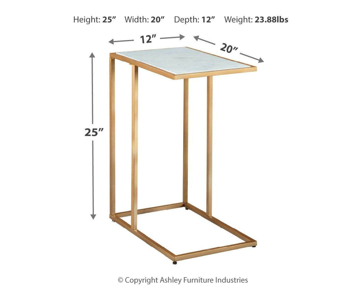 Compact—yet mighty stylish—this metal accent table is the perfect little accompaniment to any modern living space. C-shaped base slips easily beneath a sofa, sectional or chair for your convenience. Marble inset tabletop makes such a splash.