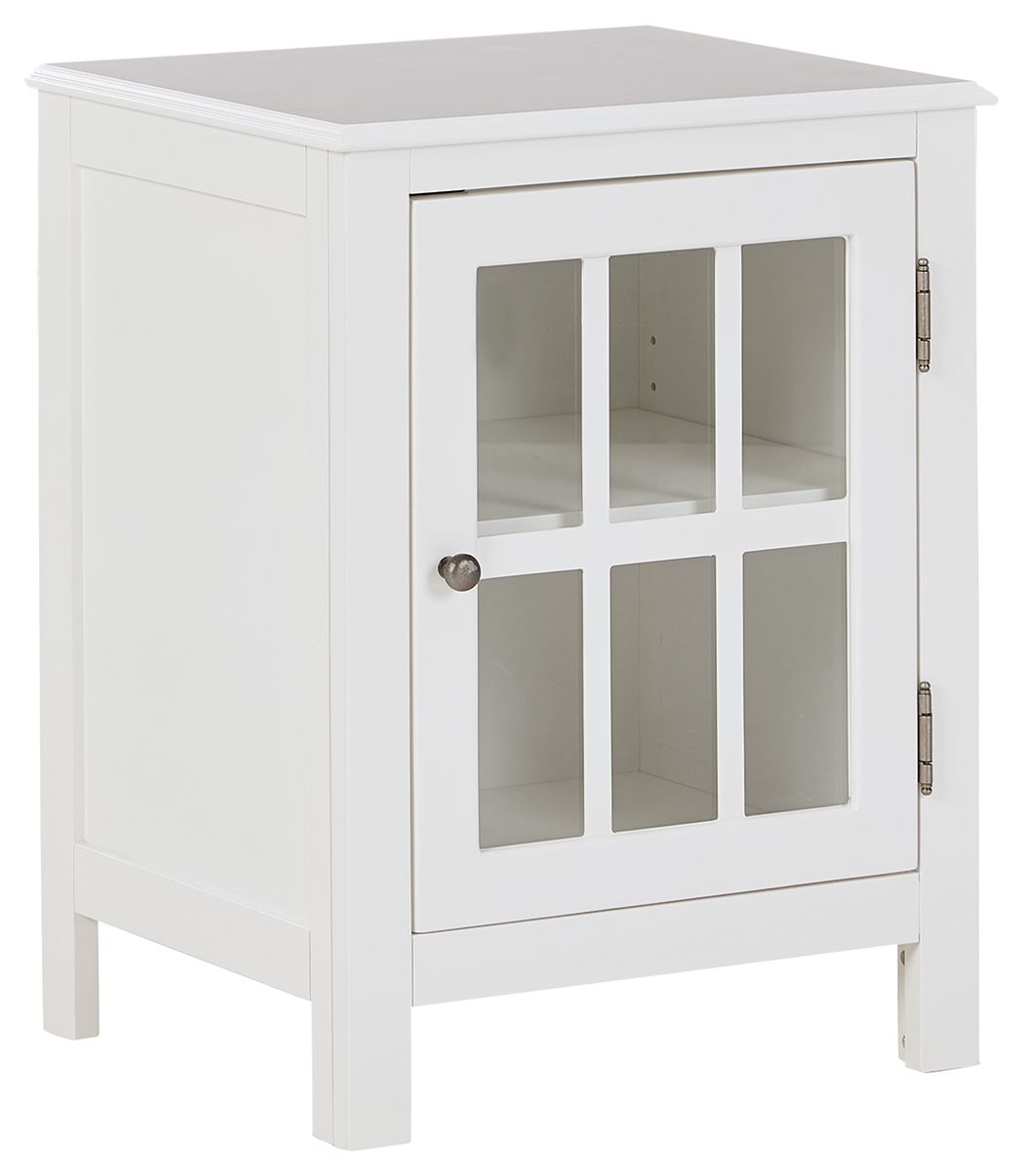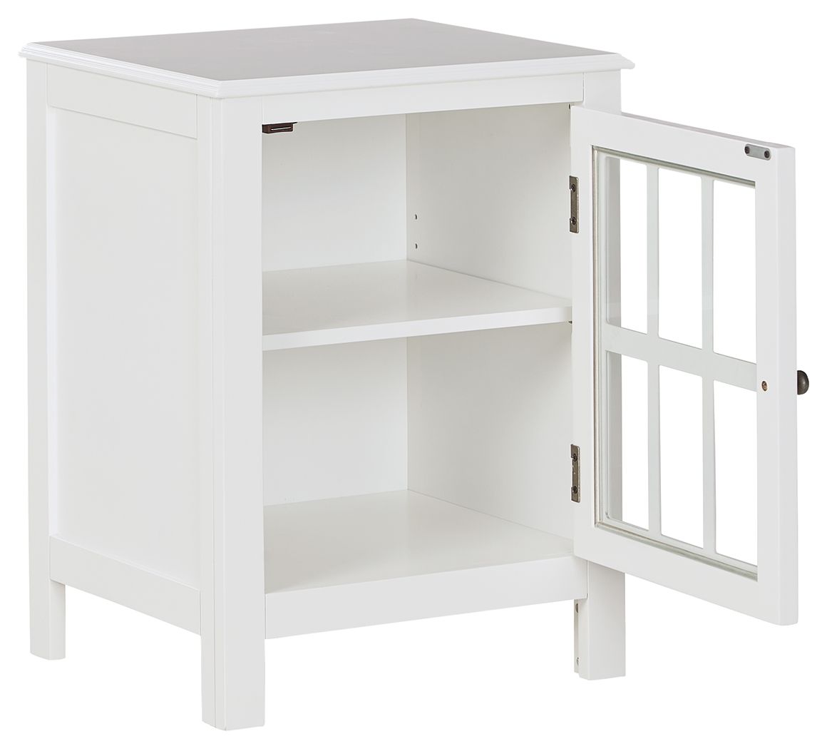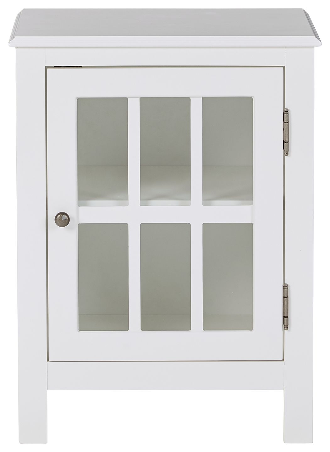 Casual style and function are made easy with this accent cabinet. This versatile storage solution in a finish is a perfect place to stack bowls, plates and linens. The lattice door front with clear inset glass allows you to show off its contents, allowing for endless decorative possibilities.